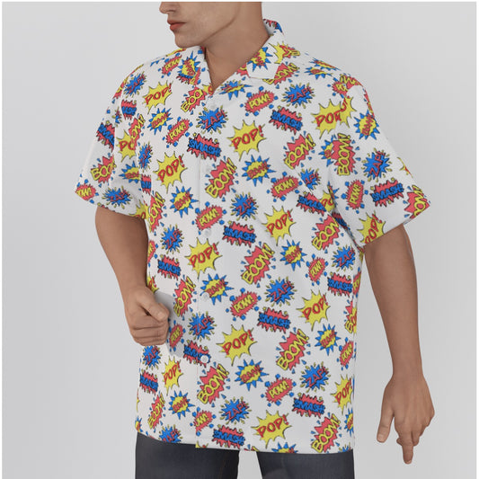 Camisa hawaiana con patrón de efecto de sonido de cómic