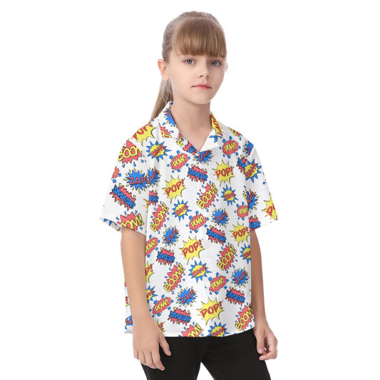 Camisa hawaiana para niños con patrón de efectos de sonido de cómic